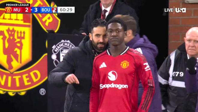 在曼联与伯恩茅斯的英超联赛中,20岁的英格兰中场科比·梅诺的哥哥乔丹·梅诺-黑姆斯受到关注。他在场边穿上「给科比自由」(FREE KOBBIE MAINOO)的黑色T恤,向主教练鲁本·阿莫林施压。这让红魔拥趸想起了许多黑暗回忆,卢克·肖、拉什福德和加纳乔的兄弟,过去都有过类似的行为。